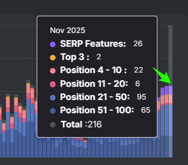 | SERP Features | 1 | 26 | +2500% |
